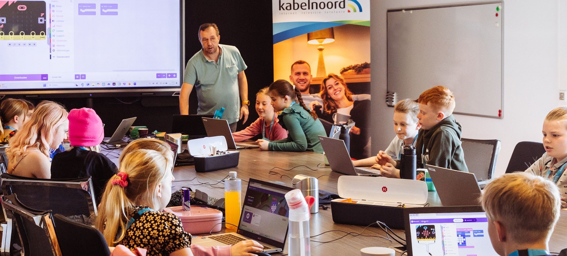 Kabelnoord organiseerde verschillende workshops. Kinderen werden rondgeleid door het bedrijf en konden hun vragen stellen aan medewerkers op verschillende afdelingen. Ook leerden ze veel over glasvezel en mochten ze zelf een glasvezelkabel lassen, een hele nauwkeurige klus.